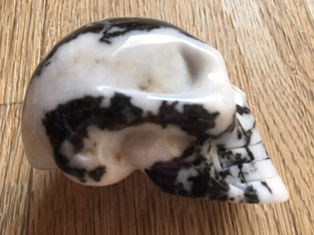 Zebra Jaspis is eigenlijk onmisbaar voor iedereen hier op aarde. Zij verenigt zoveel positieve eigenschappen die op Moeder Aarde ontegenzeggelijk te kort schiet onder de mensheid! Eigenlijk zou ik iedereen aan willen raden om daarom ook een of meerdere kiezelstenen in huis te halen of bij zich te dragen, want zij dragen op meervoudige wijze ook de kwaliteiten in zich mee van deze schitterende Zebra gestreepte wit zwarte Yin Yang gebalanceerde LeMUria Skull.