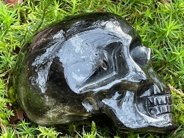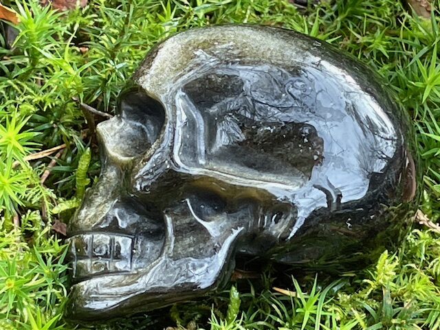 Zwart Goud Obsidiaan LeMUria Skull 7 = 7 cm: Zeta Reticuli