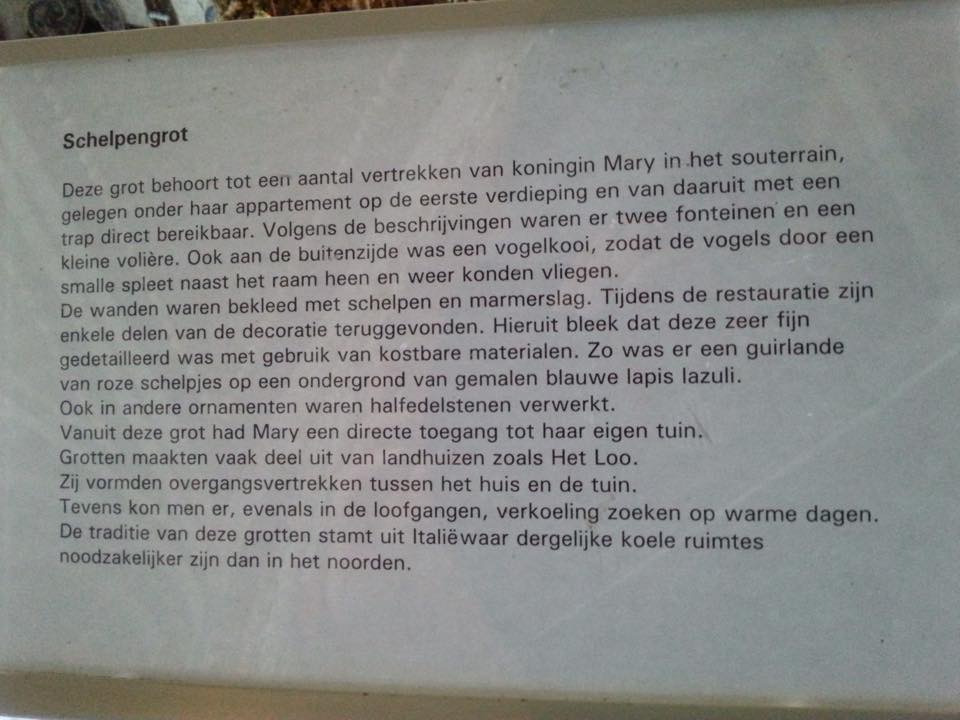 1) De Schelpengrot bevindt zich nu in het onderhuis. In een kleine aanbouw in de Koninginnentuin.