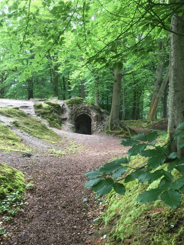 Dichtbij de borg staat de schelpengrot. Dit is de oude schatkamer van de borg. Daar stonden kisten vol goud en zilver, vol sieraden en juwelen.