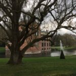 Schelpengalerij vanaf het kasteel te zien aan de overzijde van de vijver
