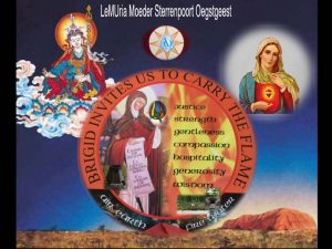 II) Het 2e voorstel was om, als de Corona maatregelen het weer toelaten, door de Moedergodin Brigid geleidde Bezielende  ‘LeMUria Tempel Inwijdingen’ in de Sterrenpoort te gaan geven, samen met Moeder Maria, want St Brigid van Kildare, kan gezien worden als de Moeder Maria van Ierland.