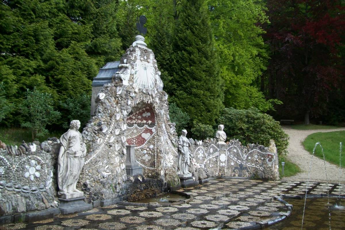 Rond de klok van 11 uur verzamelden we bij onze eerste bestemming Kasteel Rosendael in Rozendaal bij Velp, waar we in verbinding kwamen met het Oermoeder Schelpenbewustzijn via de verschillende Schelpengalerijen, de Schelpenkoepel en de kleine zeldzame Schelpengrot onder een waterval, uitkijkend op het kasteel. In deze Schelpengrot waren schelpen verwerkt vanuit de hele wereld. Ook zijn in dit park de stroomgoden en -godinnen van de rivieren de Rijn en de IJssel, nog altijd voelbaar aanwezig. Naast 2 grote mannelijke beelden van Neptunus & Hercules, worden de Hathor godinnen Venus & Aphrodite hier geëerd bij de Schelpengalerijen. Zij waren met name krachtig voelbaar in de schelpengrot onder de waterval, en verderop bij de sprengen (dit zijn kleine waterstromen) die gevoed worden door de Bronbeek en de Sonsbeek via de Sint Jansbeek in Arnhem, welke op haar beurt weer in contact staan met de Rijn en de IJssel.