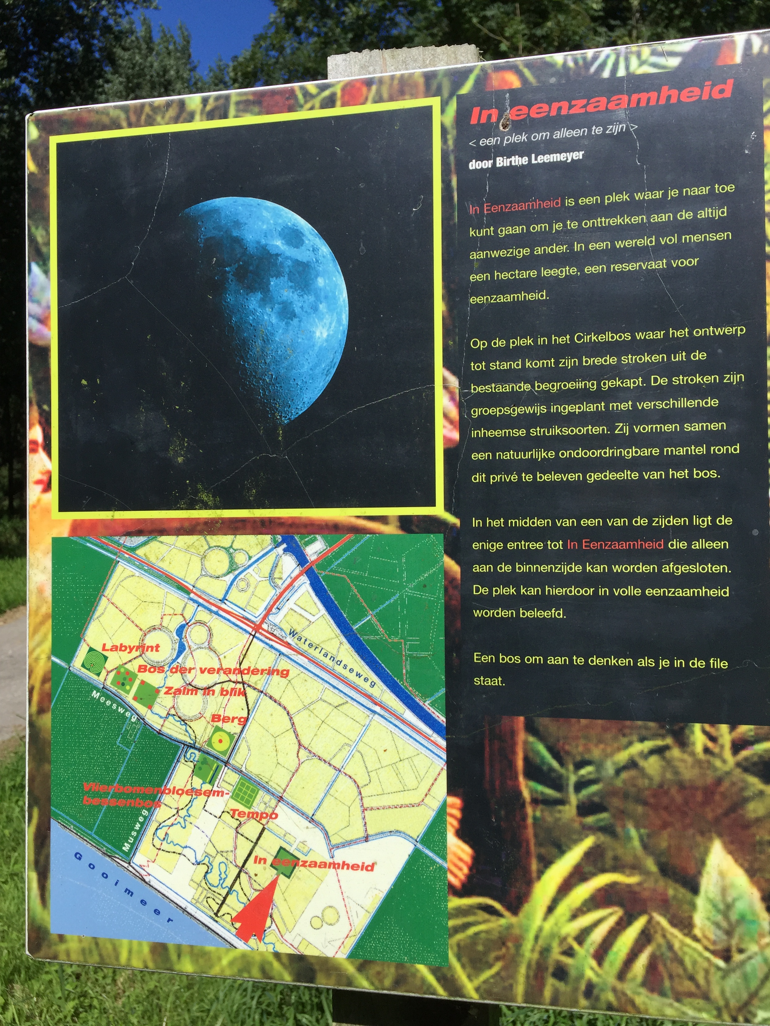 Toch hebben we na lang zoeken (op ons gevoel) al wandelend een niet meer toegankelijke Berg: Almere Boven, een overwoekerd Berkenbomen Labyrint en het Bos van Eenzaamheid ontdekt.