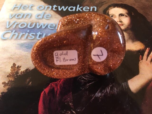 Goldflush/Goudsteen is synthetische glas met minuscule stukjes koper wat een mooi glinsterend effect heeft. De steen kan roodbruin, donkerblauw en groen van kleur zijn. Goudsteen werd voor het eerst gemaakt door alchemisten die goud probeerden te maken.