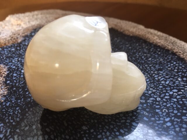 Wat een energie bevat deze Oude Wijze Inca Schedel, want ze straalt voortdurend vonken uit haar beide ogen. Ik moet werkelijk om haar lachen, omdat er een zevenvoudige bezieling in haar ligt die daarmee alles, maar dan ook alles in mij triggert en aanwakkert. Ze laat mij dit ervaren, zodat ik dit kan opschrijven voor hen die soms sombere gedachten of gevoelens kunnen krijgen als ze super fijnbesnaard zijn. Ik ben niet somber maar wel fijnbesnaard….en het resulteert bij mij dus in een brede schaterlach. Ze vertelt me dat ze erg geïnteresseerd is in de samenwerking met mijn Zonne Maya godin Calciet skull, een XLLL die voor de stoel staat waar de Inwijdelingen in de Sterrenpoort mogen plaatsvinden 😍! Ook kijkt ze met een schuin oog naar alle goudbesnaarde Opaliet engeltjes en Draakjes. Kortom een vrolijk pittig doortastende / alles door stralende vrouwelijke Inca skull met zevenvoudige Tijdsformules & -Coderingen, waarmee iedere LeMUriaan een flinke Booster aan kwaliteit verhogende inspiratie zal ontvangen als je met haar gaat werken/mediteren/wandelen/channelen!
