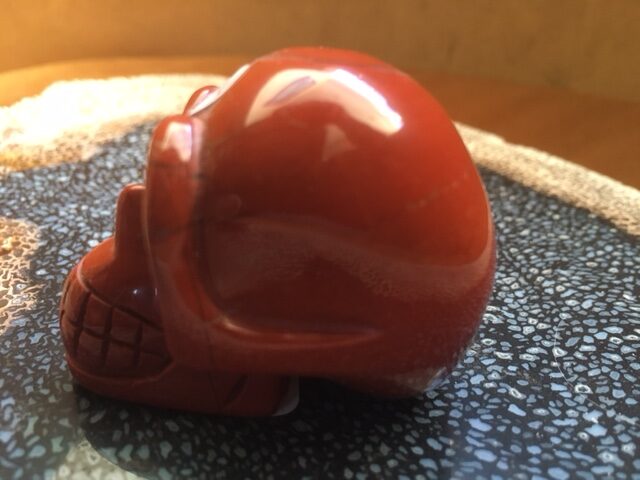 Rode Jaspis Skull 8 – Verbonden aan Feeërieke Elfenwereld op Moeder Aarde = 3.9 x 2.7 x 2.9 cm